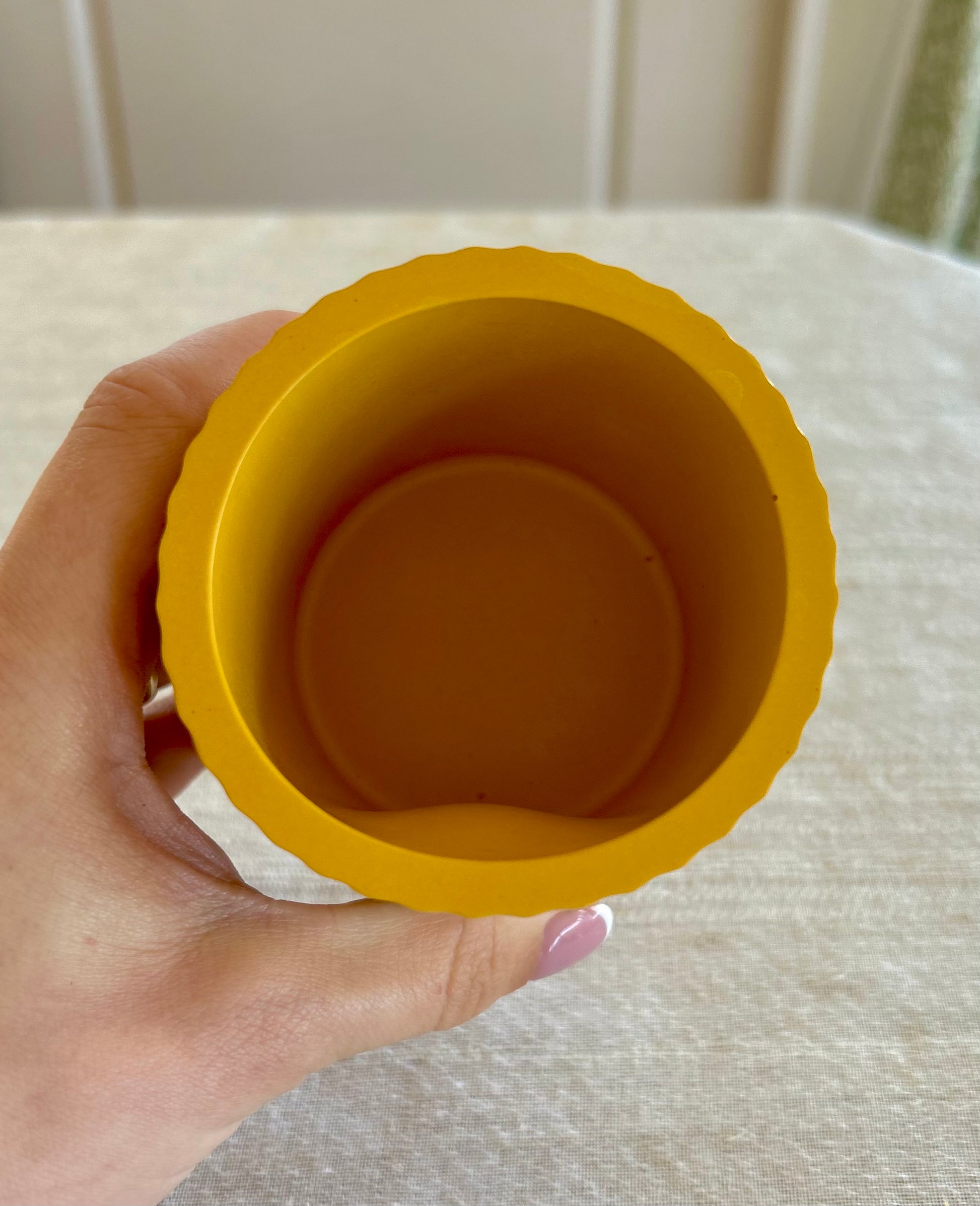 This ribbed candle jar in Mustard has a bulge on the inside of the jar. It is still completely usable with our candle refills, however, once the candle is in the jar it’s harder to remove it. This should not be an issue as it burns as normal.