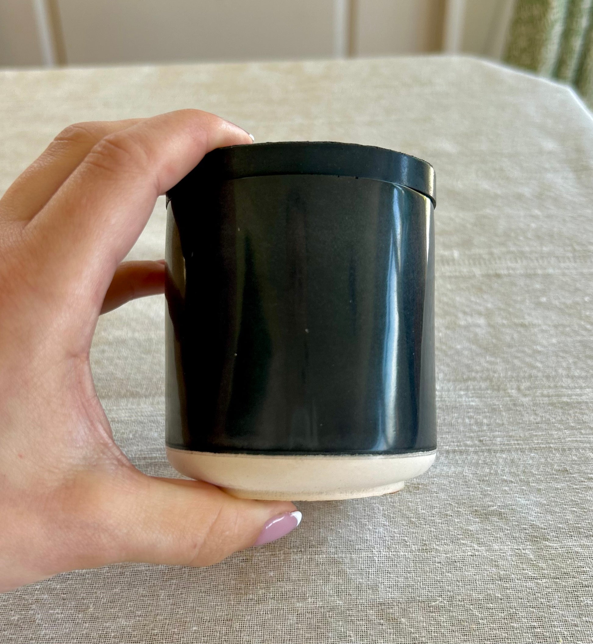 This smooth candle jar in colour Charcoal and Oat striped doesn’t have any specific imperfections. It’s been added to this collection due to the design being different from the other ranges. The stripe has been created using excess mixture from other batches - waste not want not!