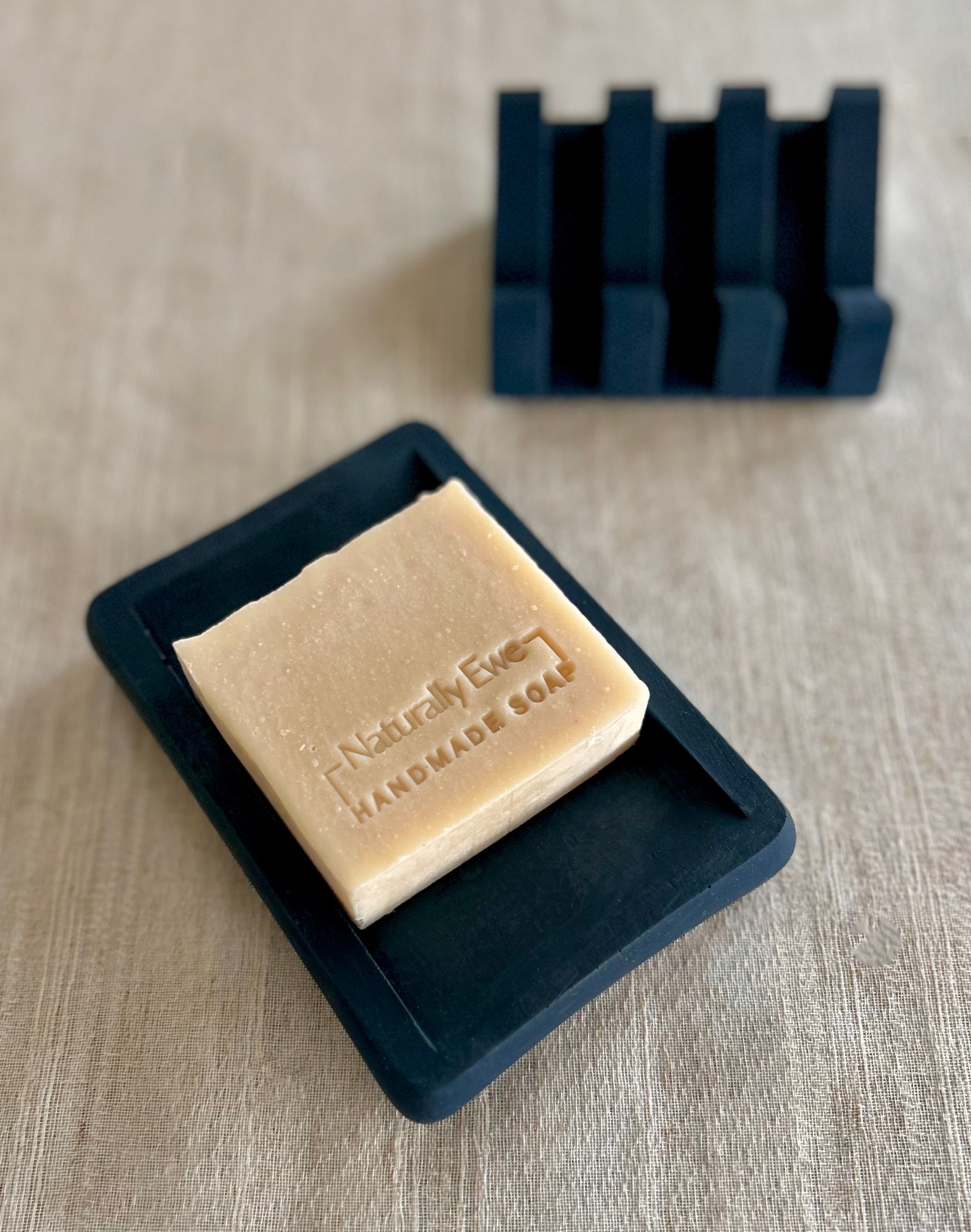 Each soap dish is made from Jesmonite which is an environmentally conscious alternative to traditional resin products. It is non toxic, contains no VOC’s and is safe to work with. Working in an environmentally conscious way is very important to Naturally Ewe – all of our packaging is recyclable or plantable as well as using all sustainable and environmentally friendly products and ingredients.