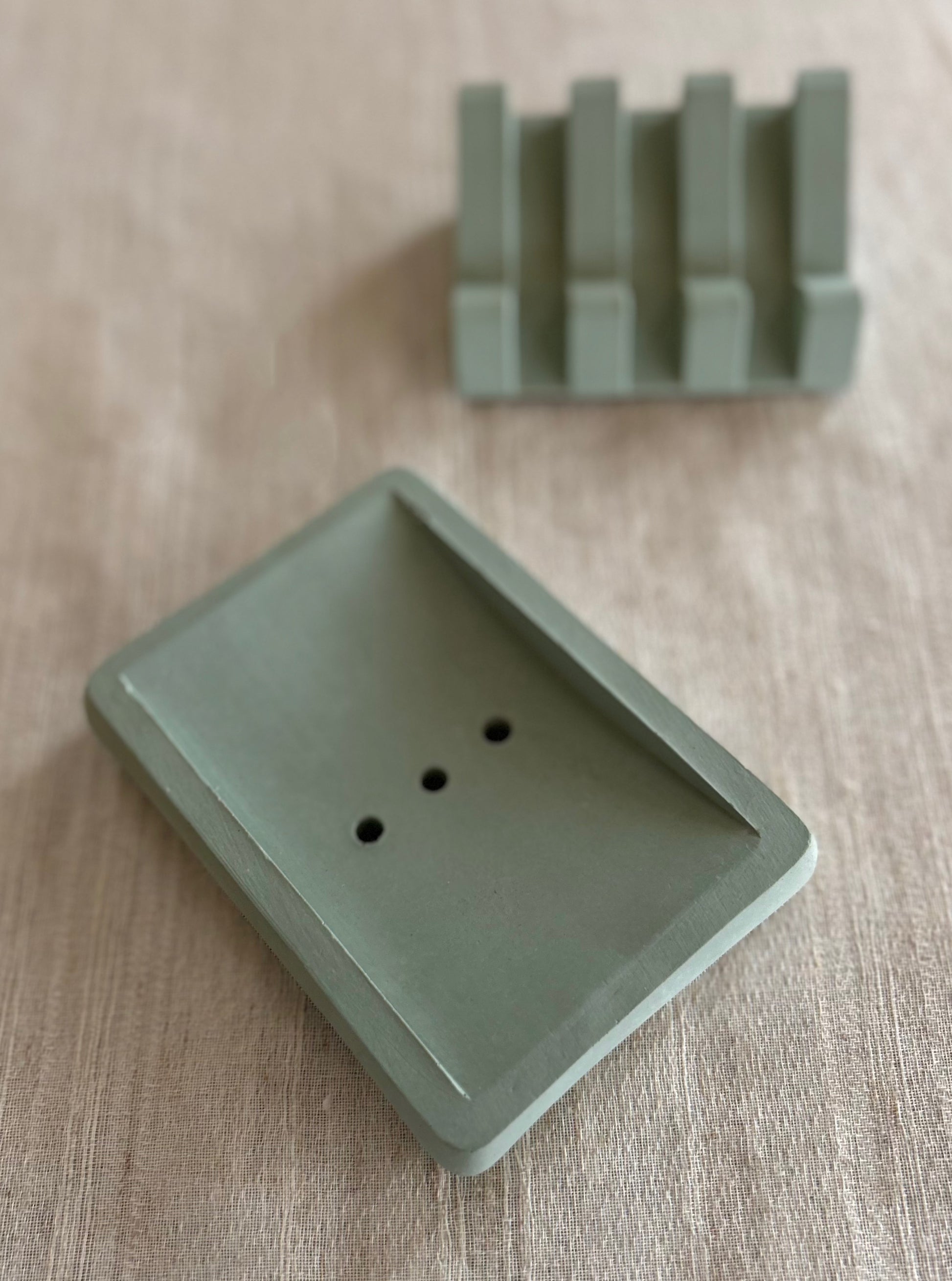Each soap dish is made from Jesmonite which is an environmentally conscious alternative to traditional resin products. It is non toxic, contains no VOC’s and is safe to work with. Working in an environmentally conscious way is very important to Naturally Ewe – all of our packaging is recyclable or plantable as well as using all sustainable and environmentally friendly products and ingredients.
