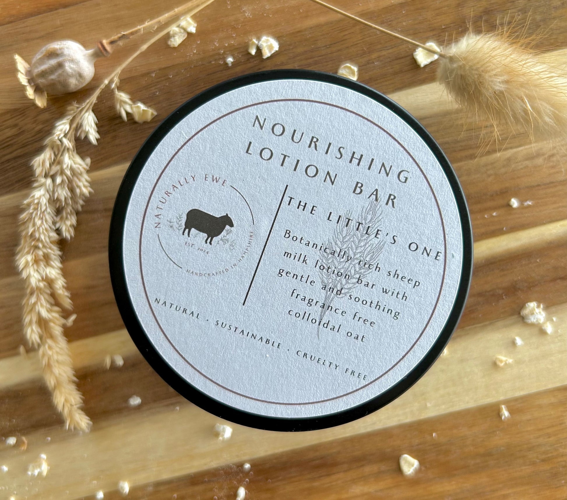 Deeply nourishing, natural solid lotion bars. A hydrating blend of Beeswax, Olive Oil and Shea Butter with protein rich Sheep Milk and organic colloidal oatmeal powder. The perfect mess free moisturiser for the whole body or specific dry areas such as hands, feet, elbows or knees. Being a solid compact, they are ideal for travelling or keeping in your bag for on the go hydration.