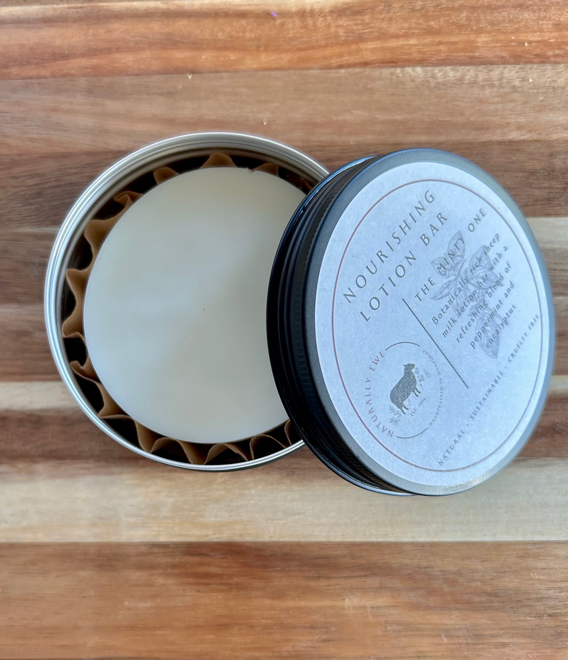Deeply nourishing, natural solid lotion bars. A hydrating blend of Beeswax, Olive Oil and Shea Butter with protein rich Sheep Milk and pure essential oils. The perfect mess free moisturiser for the whole body or specific dry areas such as hands, feet, elbows or knees. Being a solid compact, they are ideal for travelling or keeping in your bag for on the go hydration.