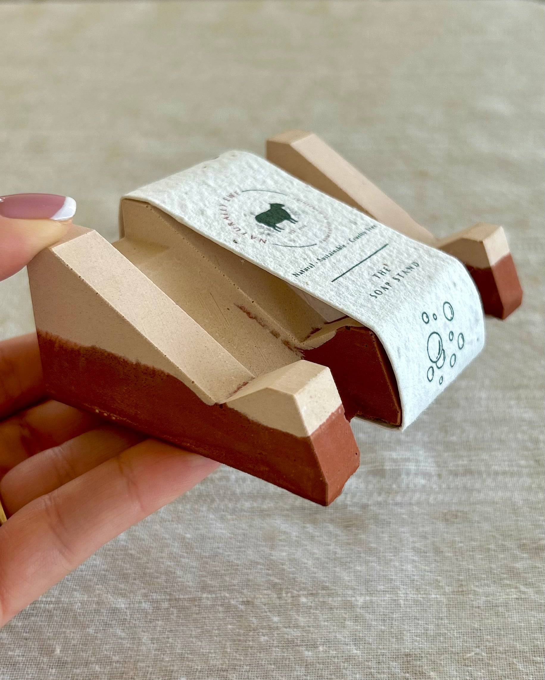This soap stand in colour Rust and Oat striped has some damage to each inner section of the base. It’s also been added to this collection due to the design being different from the other ranges. The stripe has been created using excess mixture from other batches - waste not want not!