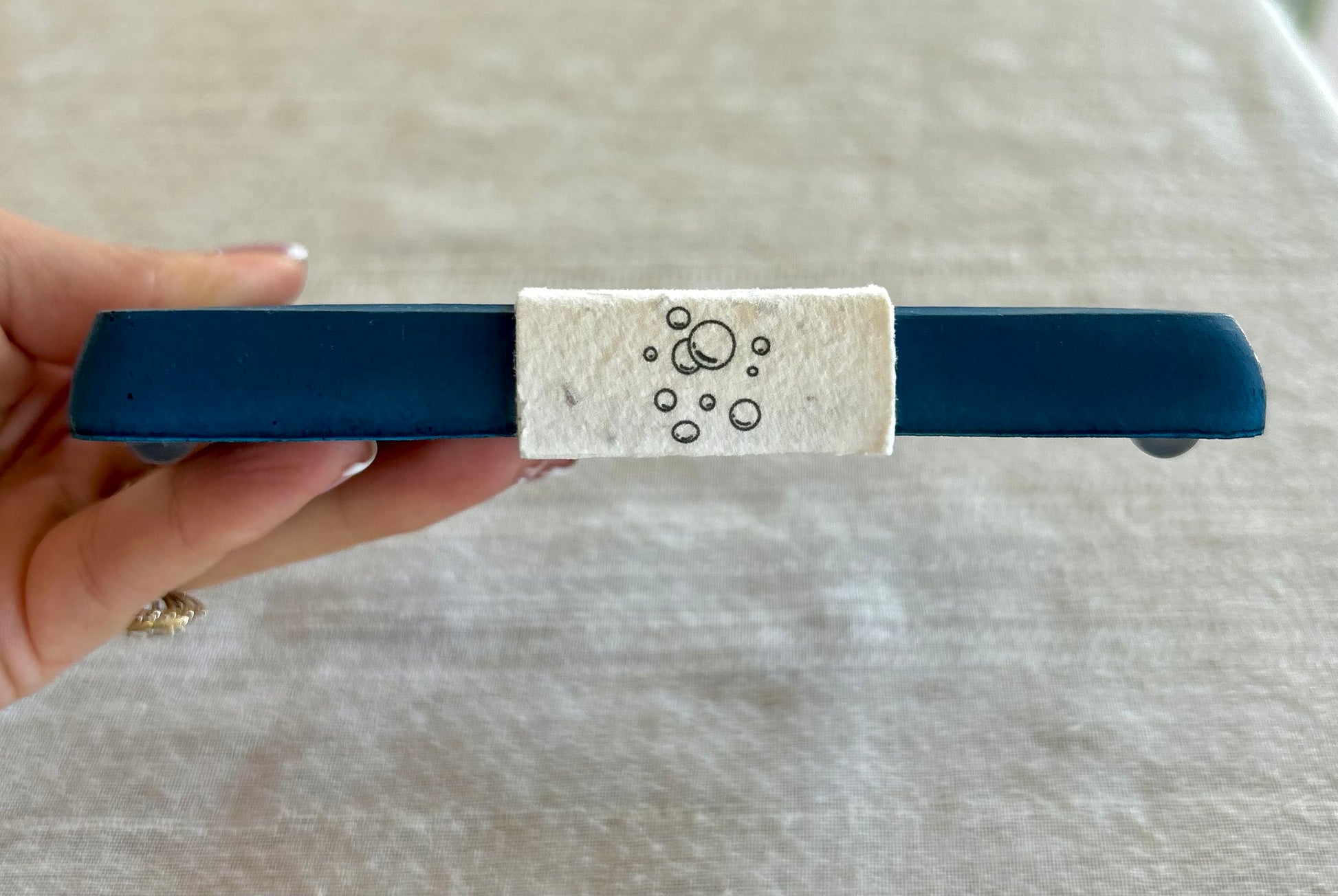 This soap tray in colour Midnight Sky is a different shade to the rest of the Midnight Sky range - it is a bolder blue rather than a navy blue. It is also slightly thinner than the other soap trays. These imperfections do not affect the use of the soap dish.