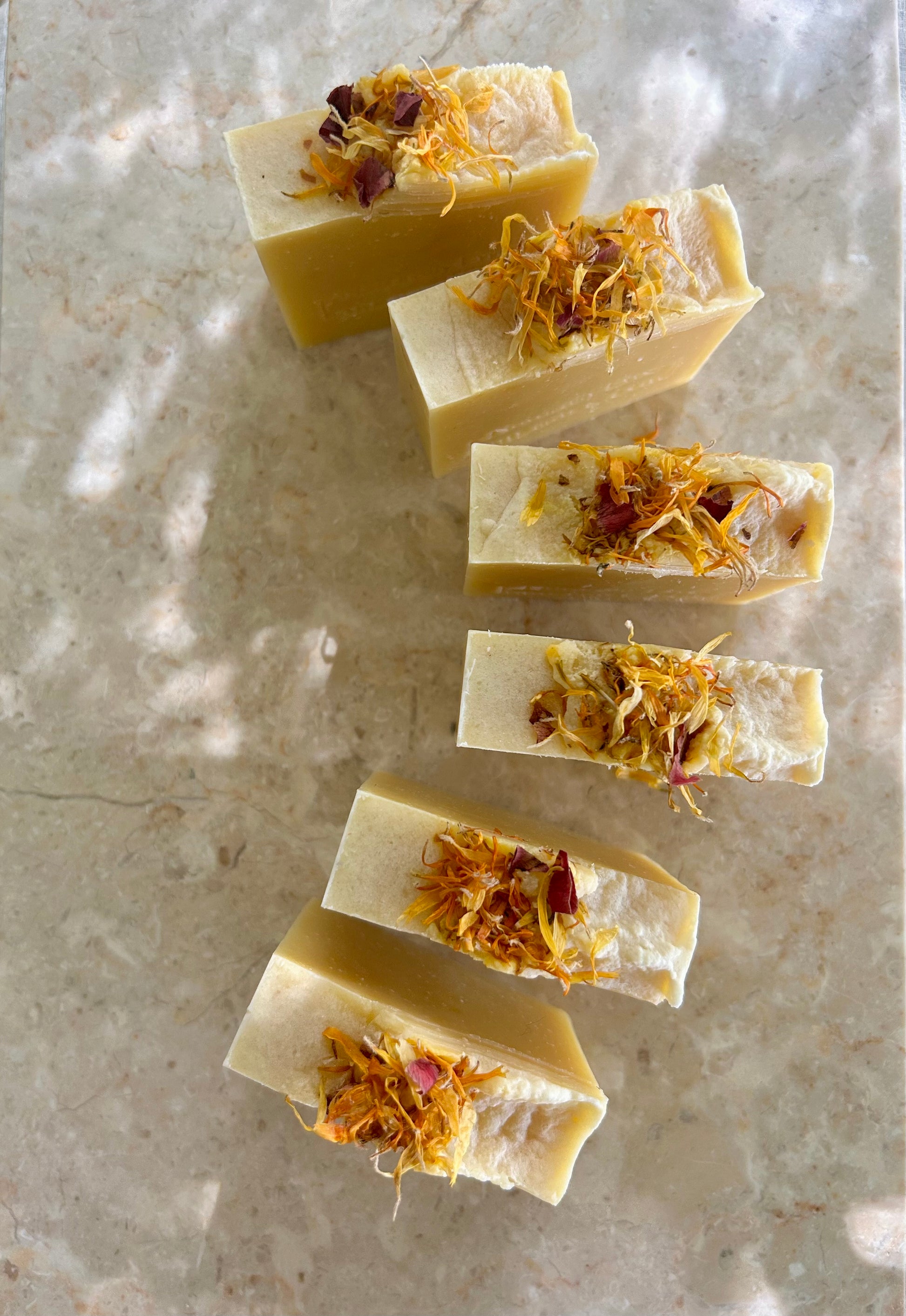 Botanically rich sheep milk soap with a soothing blend of calendula, rose and bergamot
