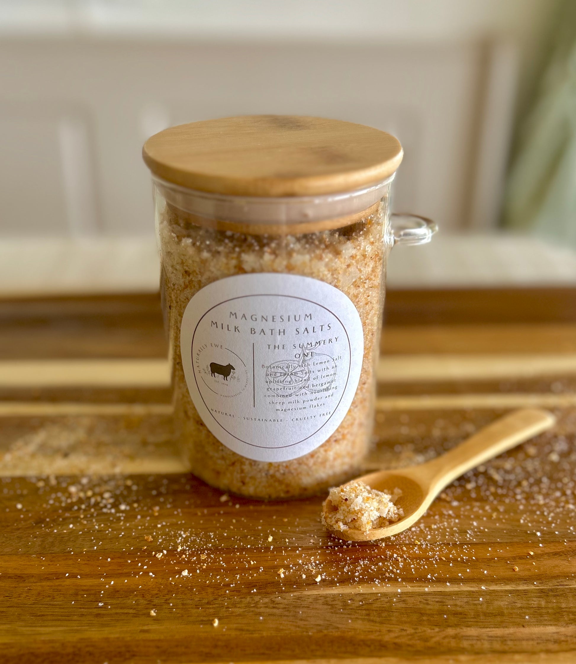 A botanically rich blend of muscle relaxing Epsom Salts, soothing Magnesium Flakes and nourishing Sheep Milk Powder with Lemon Salt combined with a blend of pure essential oils.