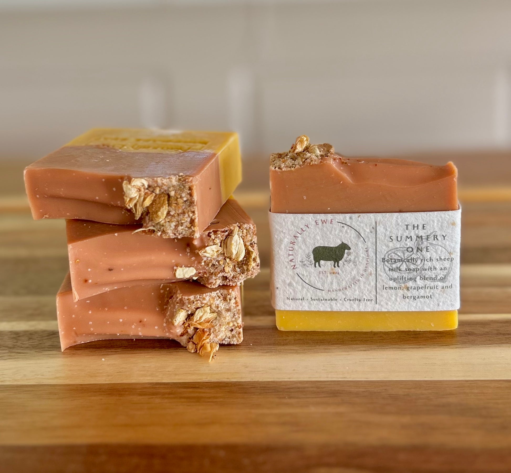 Botanically rich sheep milk soap with an uplifting blend of lemon, grapefruit and bergamot