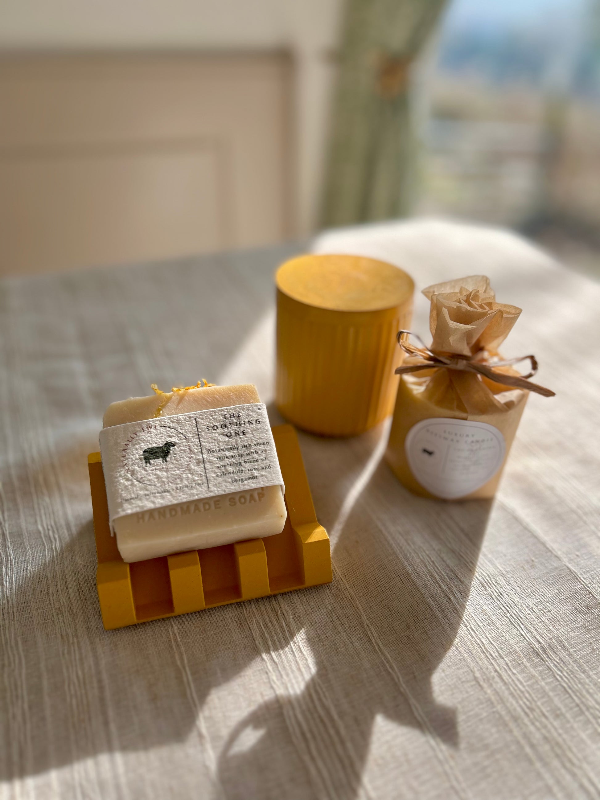 Here at Naturally Ewe we like to be as accommodating as possible so if you’d prefer the soap and candle in separate fragrances or the candle jar and soap dish in different colours just drop us an email after your purchase to let us know your choices! The candle jar comes in the ribbed version as standard and the soap dish comes in the stand style however, if you’d prefer the smooth version of candle jar or the soap tray please let us know after you’ve placed your order.
